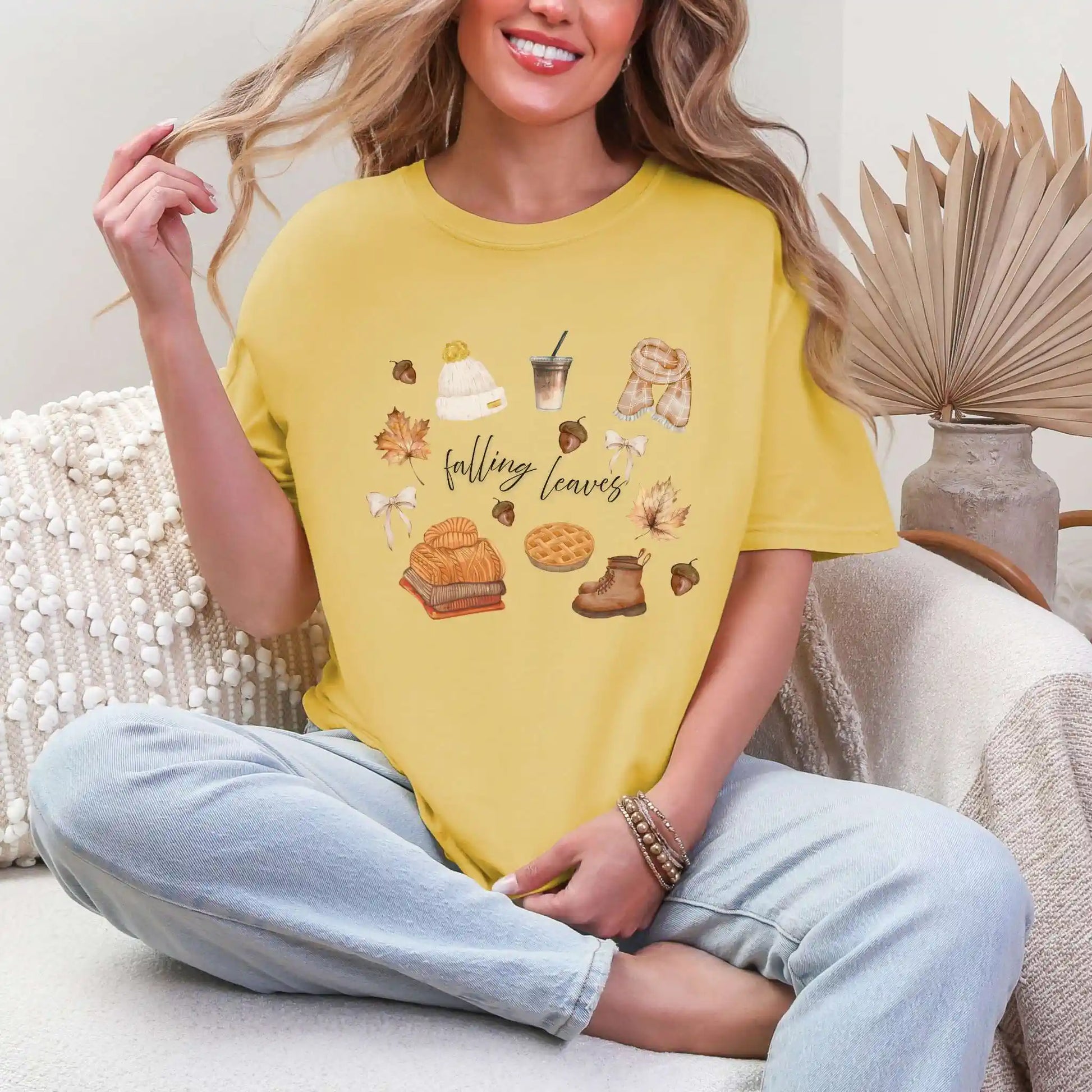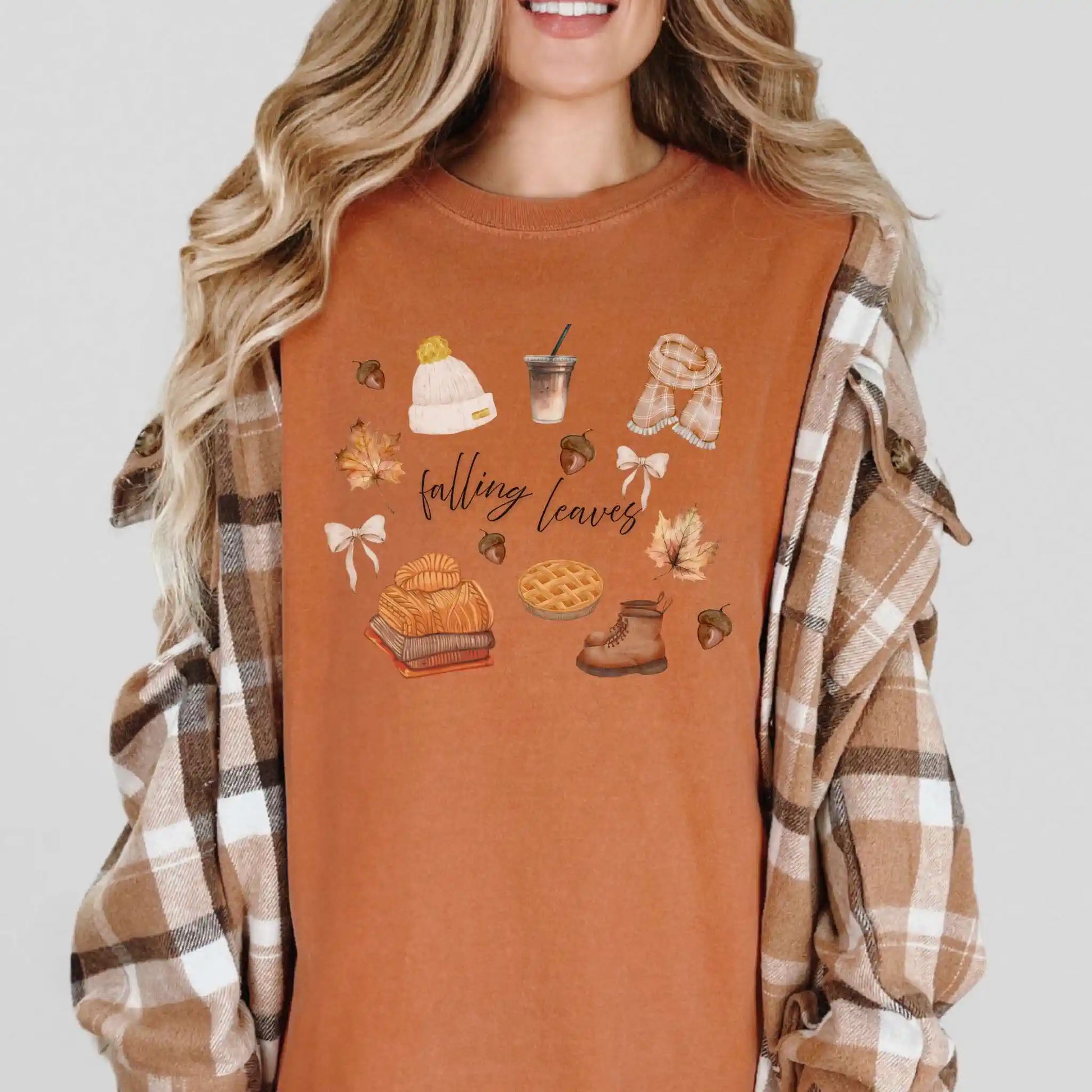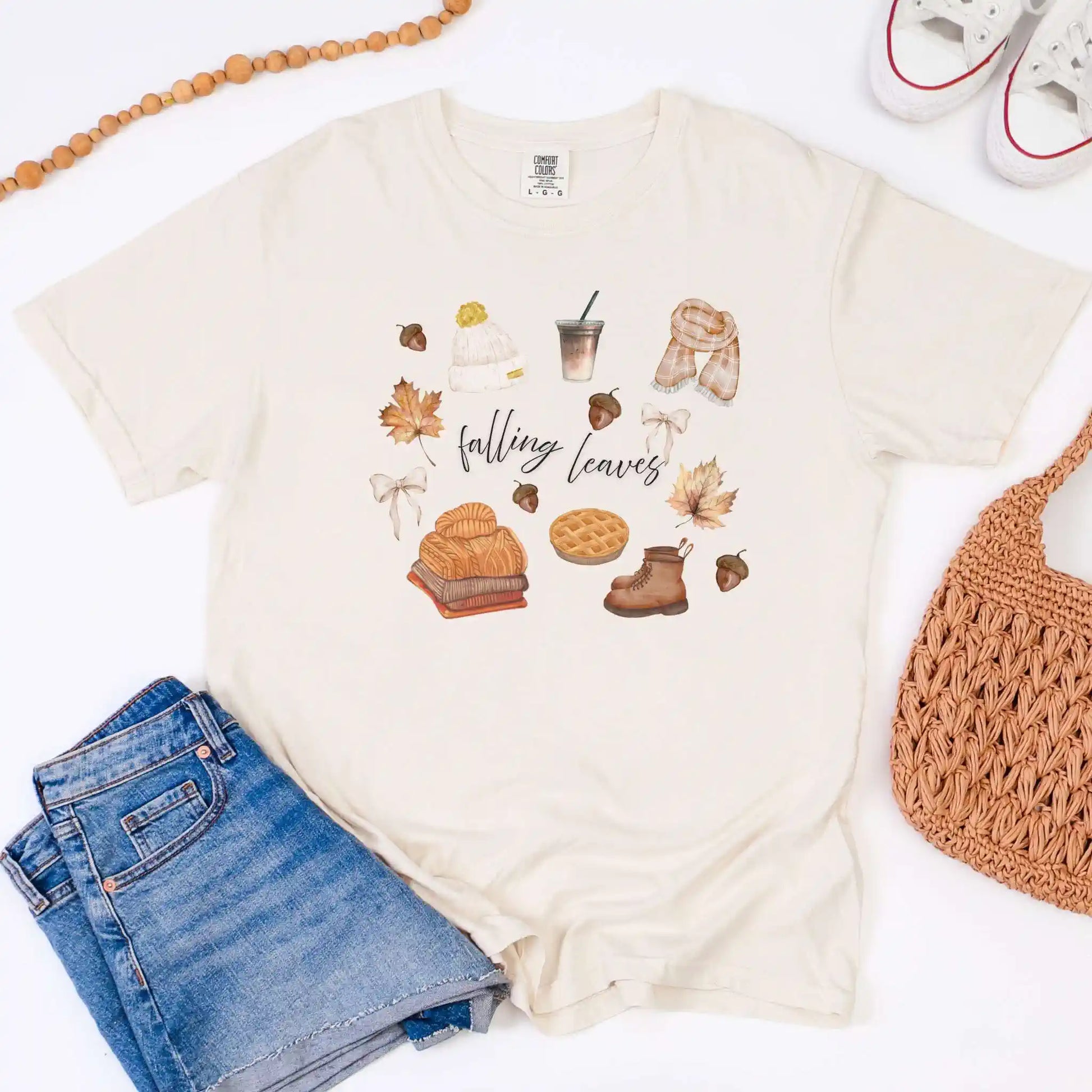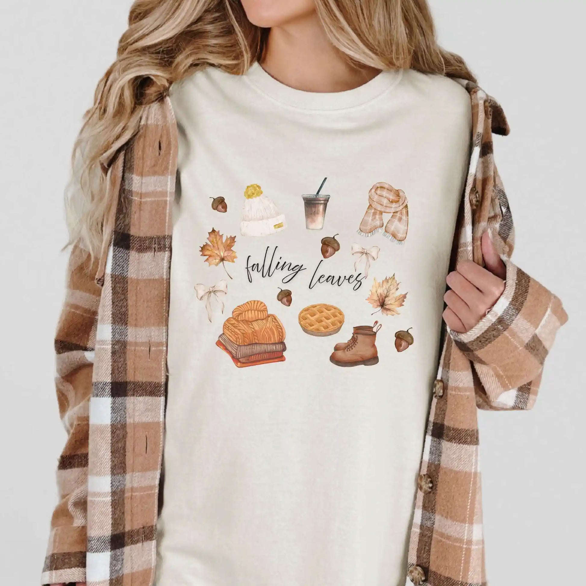 This front design features soft watercolor-style illustrations and hand-lettered script, making it perfect for pumpkin patch visits, coffee runs, or weekend leaf peeping adventures.