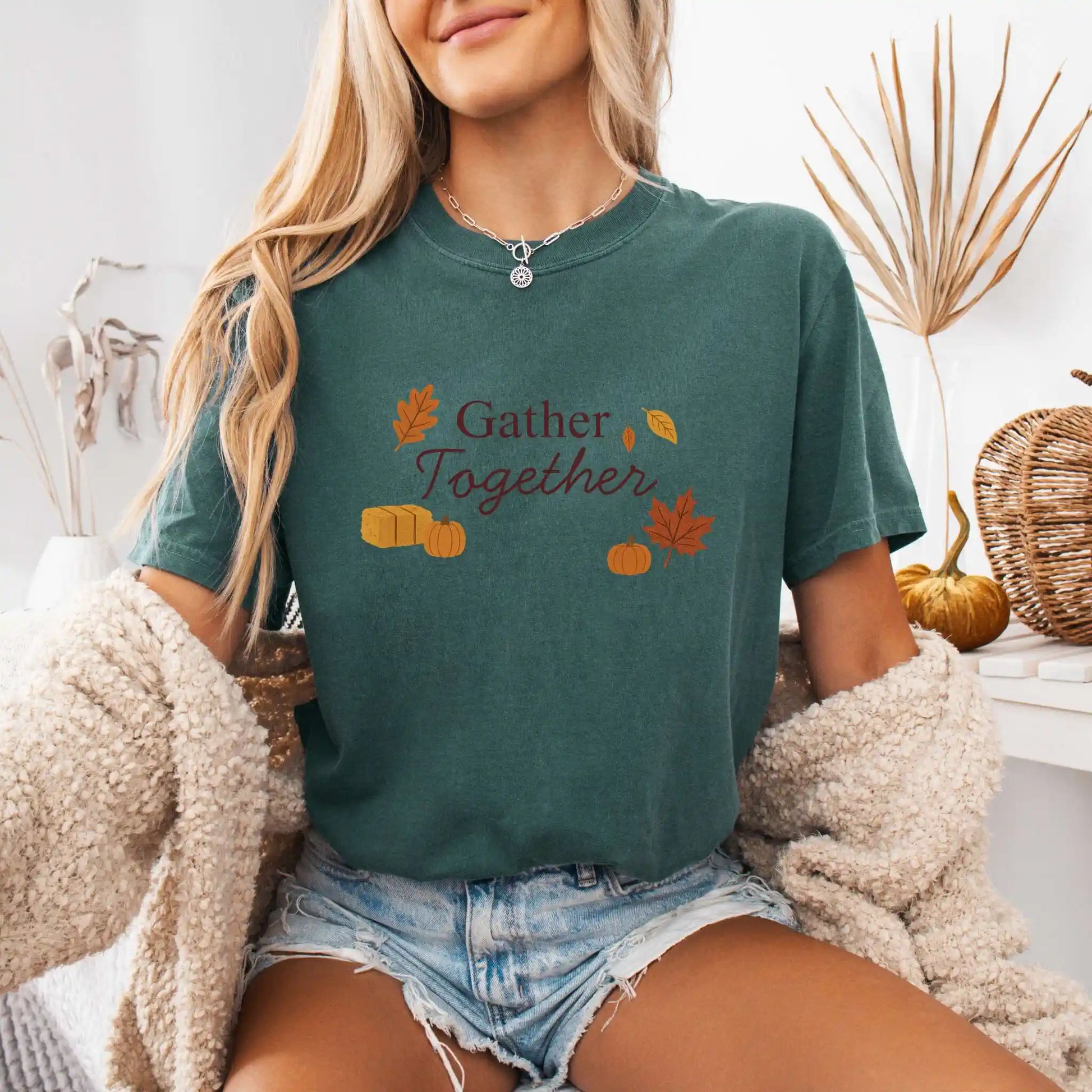 Fall is for family, friends, and slowing down to savor the moments that matter most. This “Gather Together” tee embodies the warmth of autumn traditions and the joy of shared meals, laughter, and gratitude.