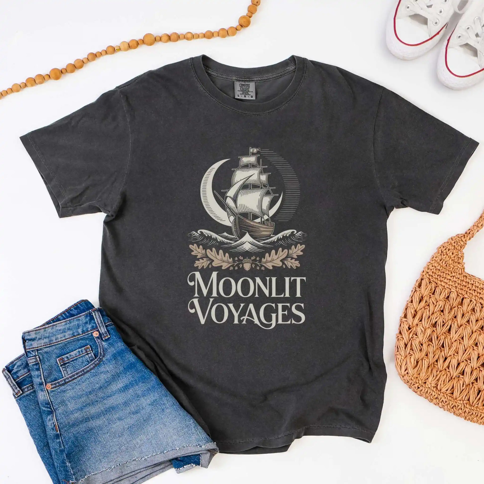 Adventure meets serenity in this “Moonlit Voyages” tee — a design that captures the magic of sailing under starlit skies. It’s made for explorers, storytellers, and anyone who feels the call of the sea at night.