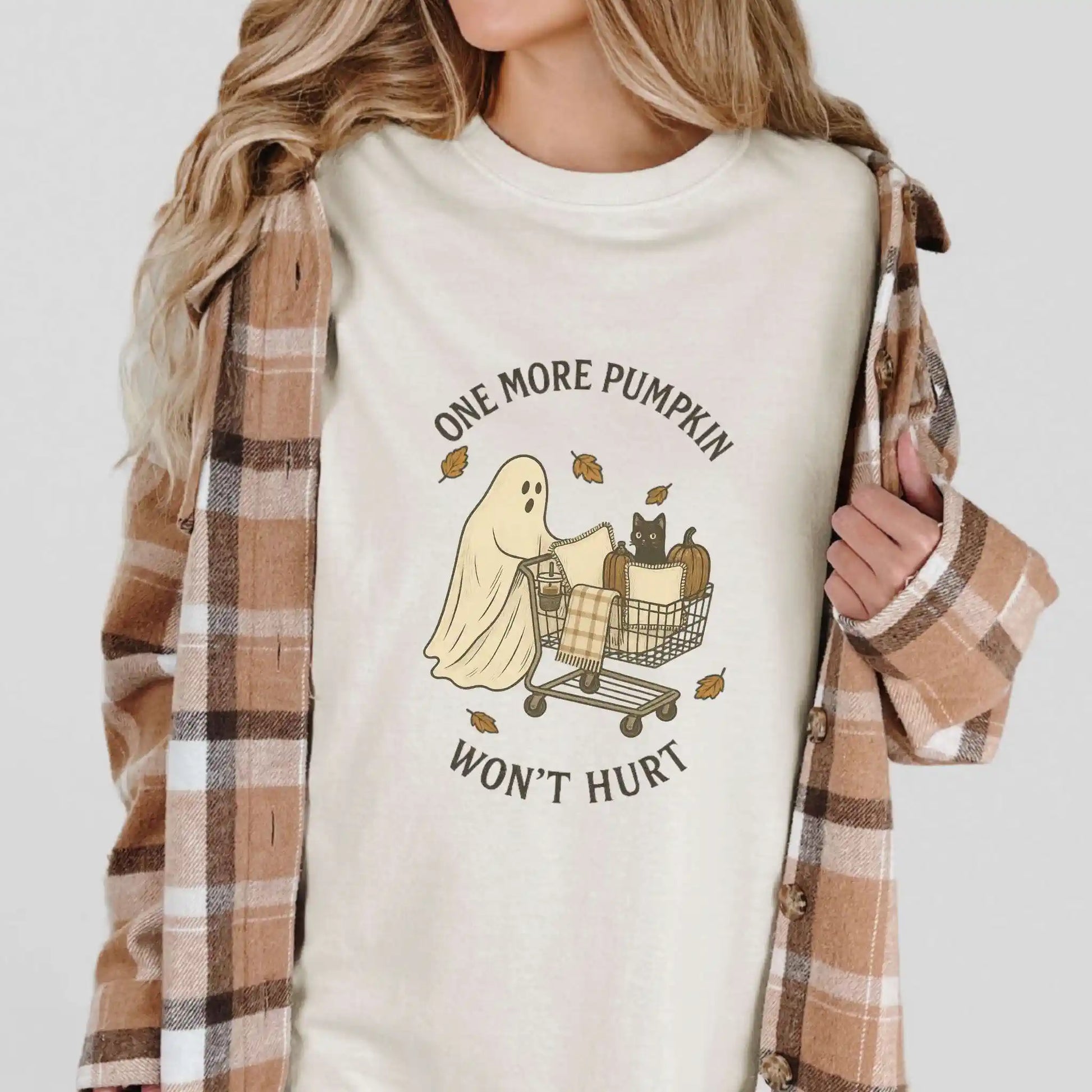 Celebrate the magic of fall shopping trips with this heartwarming “One More Pumpkin” tee. Perfect for anyone who can never resist adding just one more pumpkin to the cart, it brings together autumn charm and cozy nostalgia in a lighthearted way.