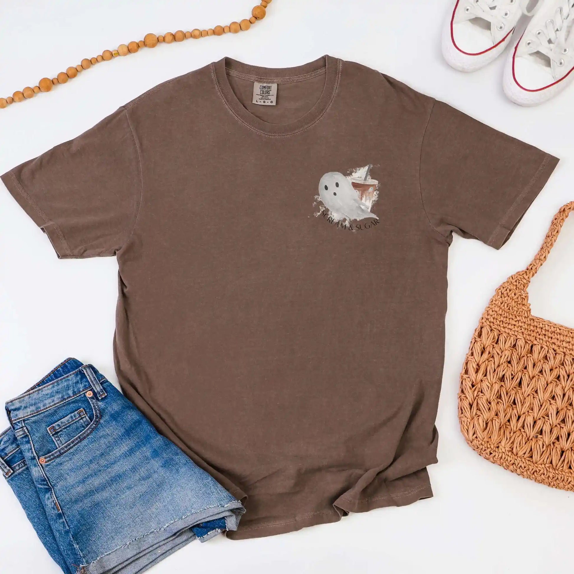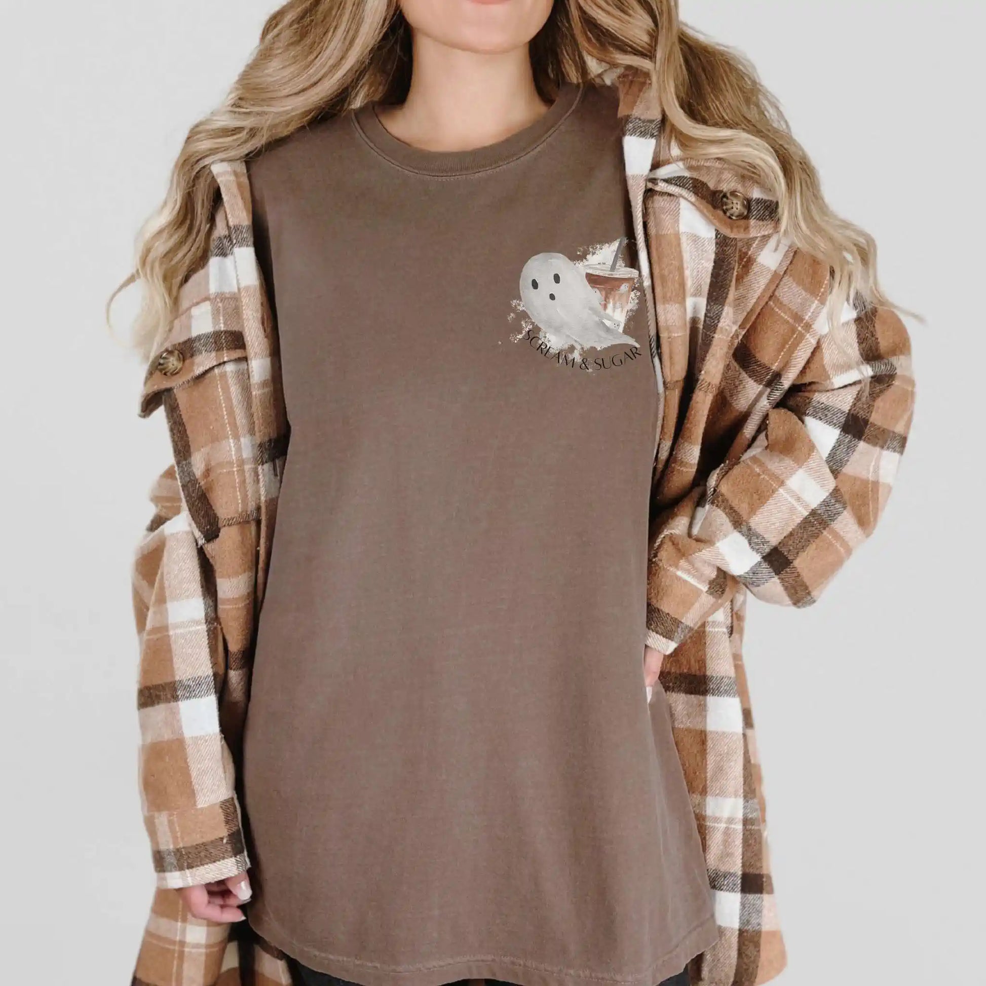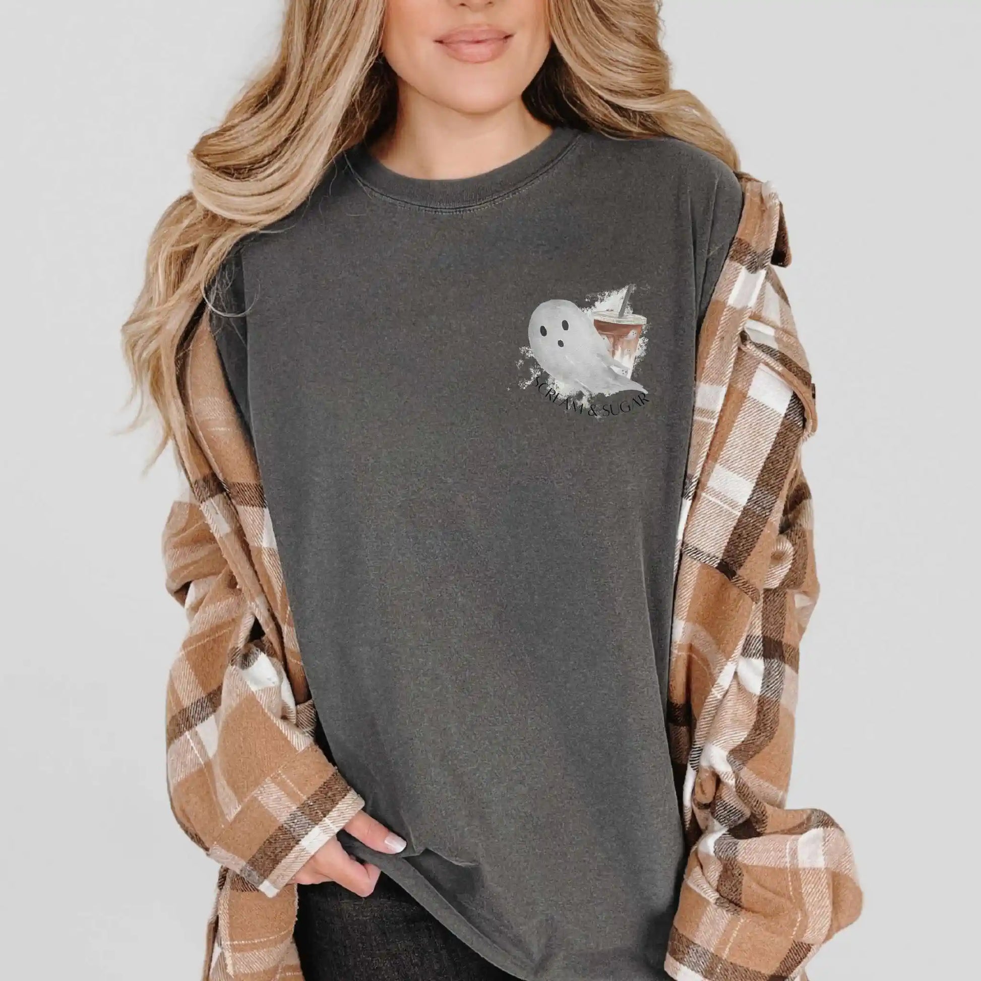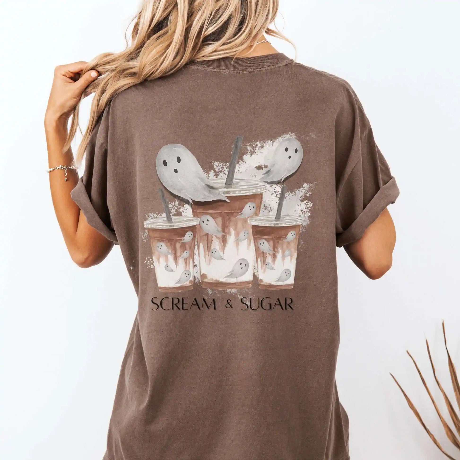 Get your daily fright and delight with the “Scream & Sugar” tee — where iced coffee meets a friendly ghost invasion.