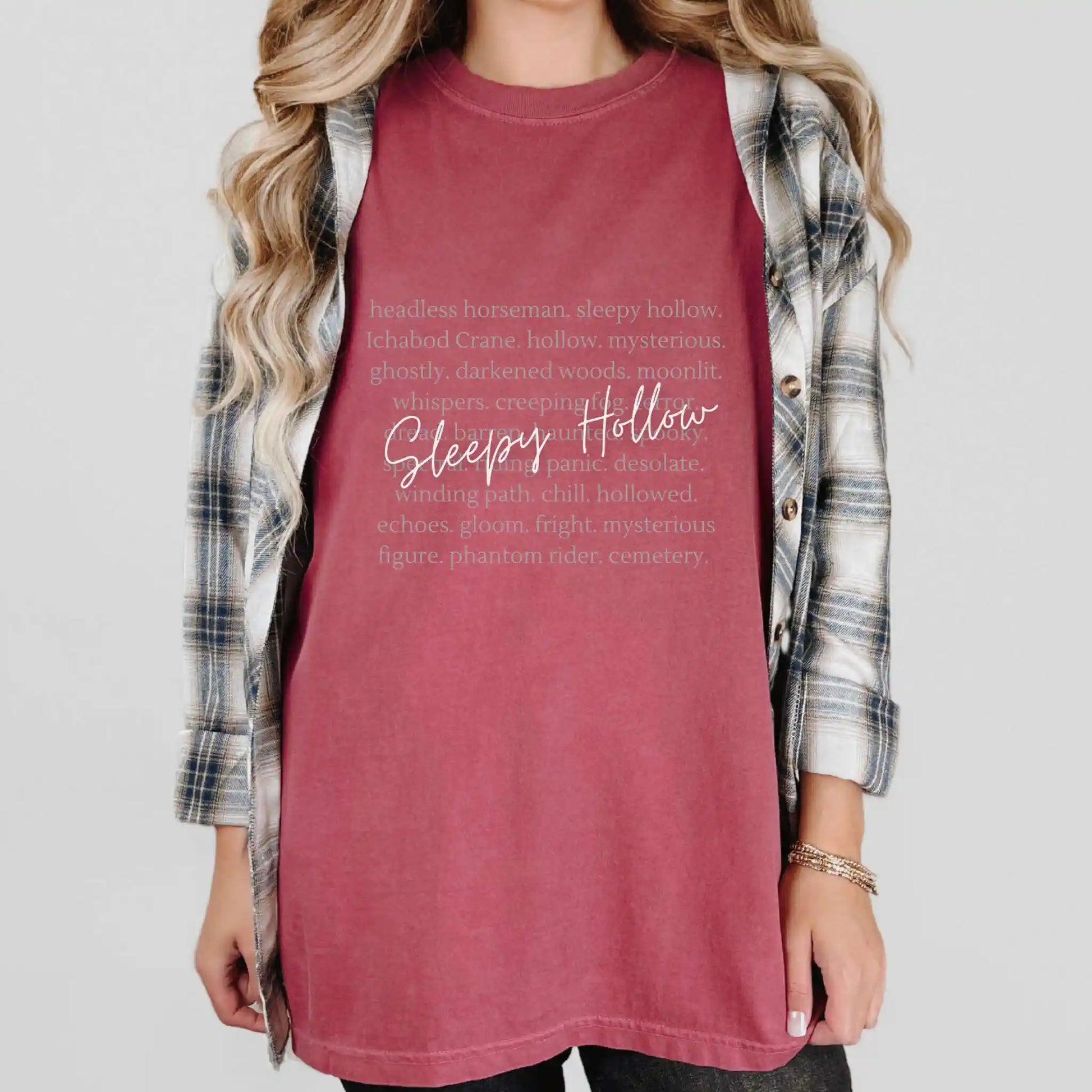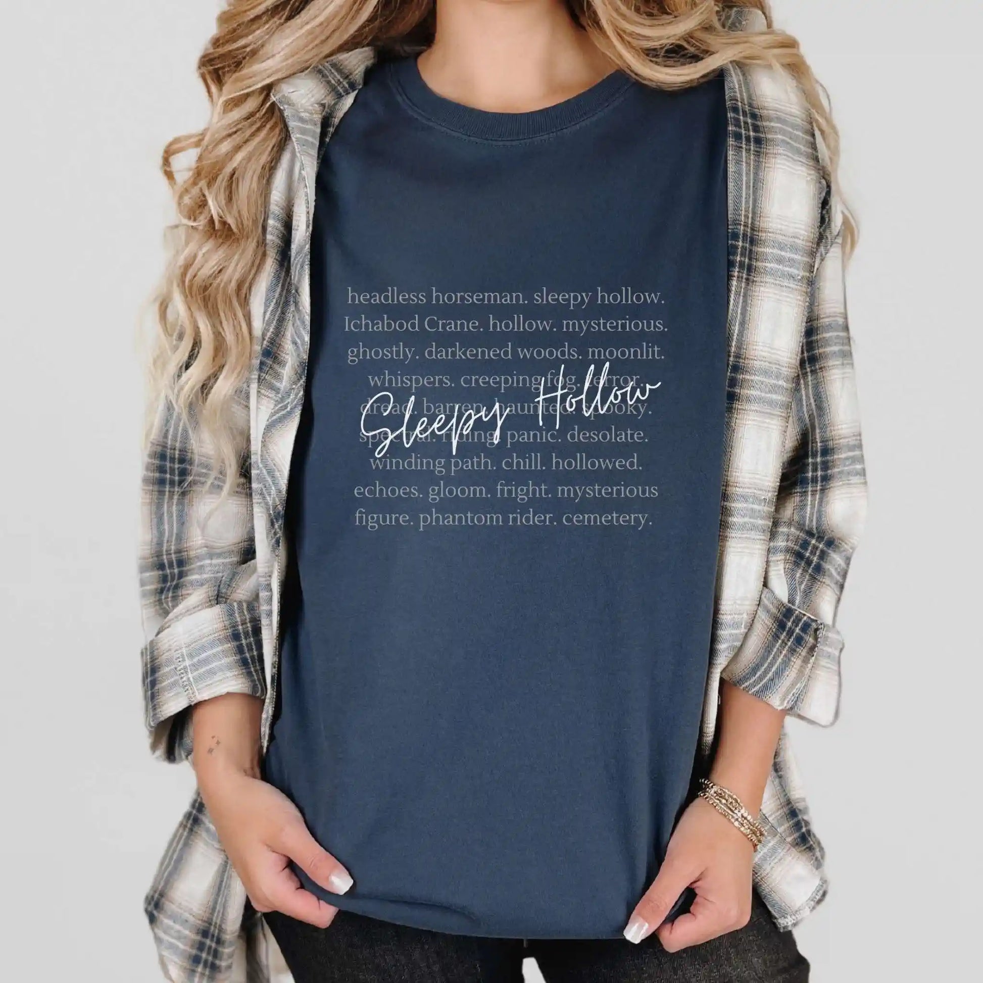 Step into legend with this “Sleepy Hollow” tee, where ghostly typography weaves together haunting imagery — headless horseman, moonlit woods, whispered dread, and phantom riders.