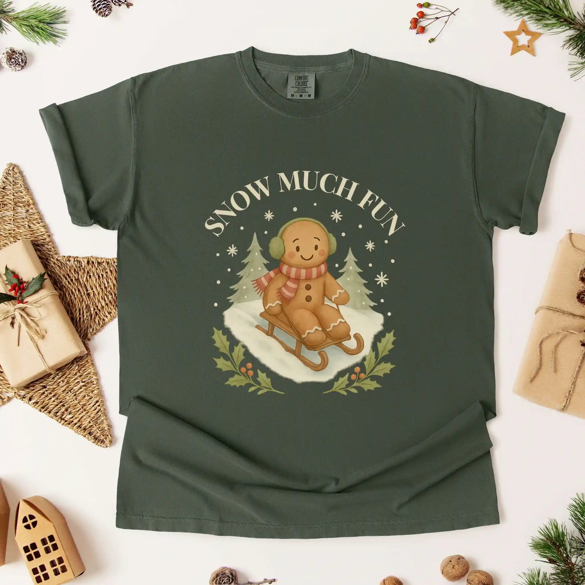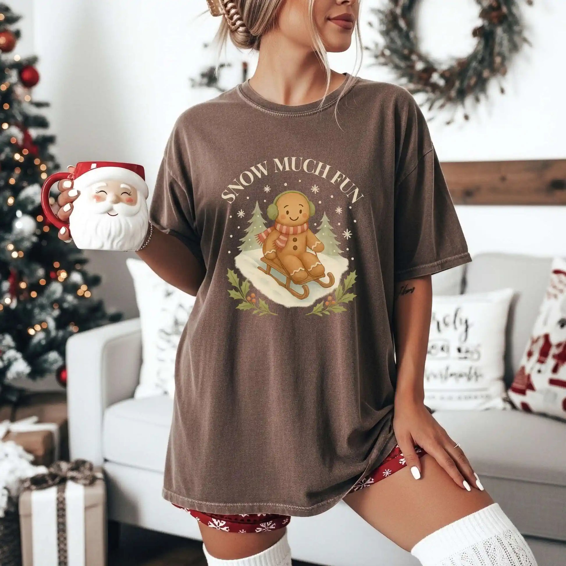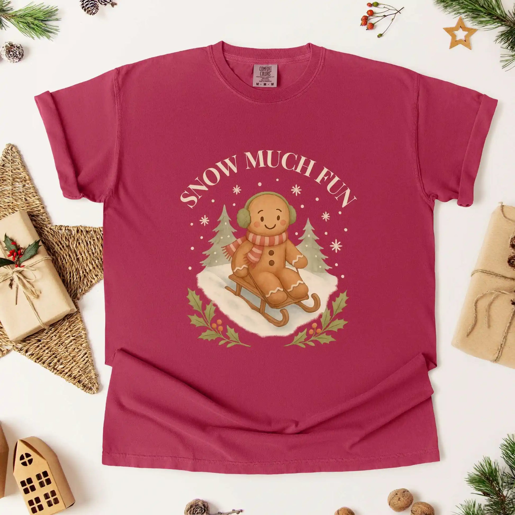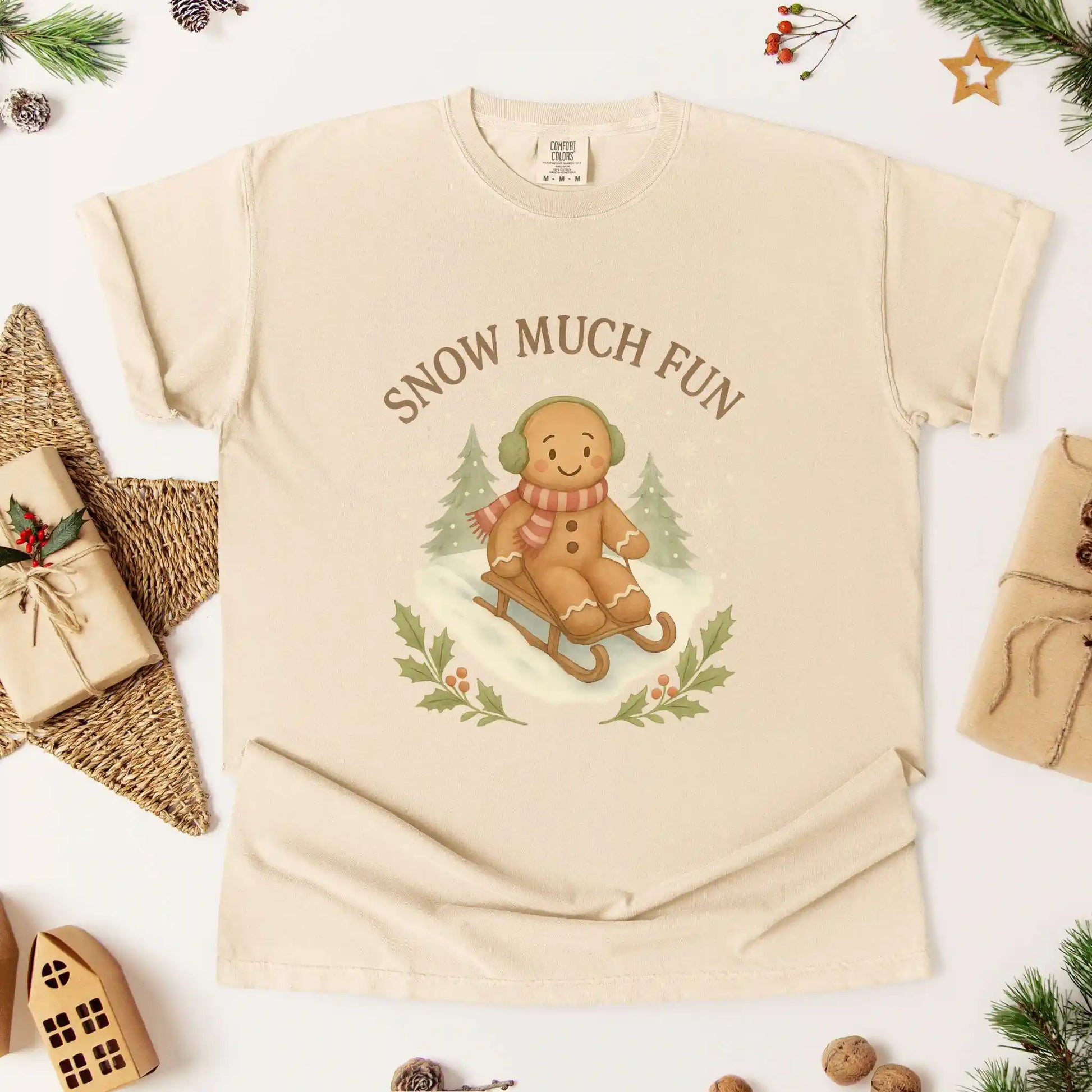 Our “Snow Much Fun” tee brings a little gingerbread magic to the season. It’s playful, cozy, and full of charm made for those who find joy in snowflakes, sled rides, and all the simple moments that make winter wonderful.
