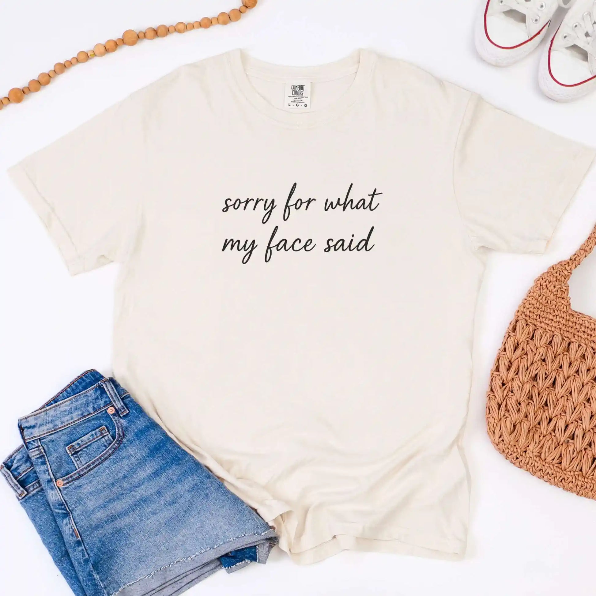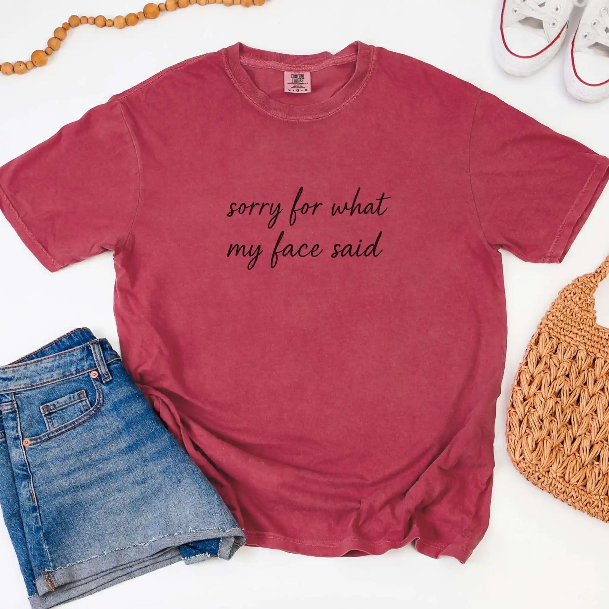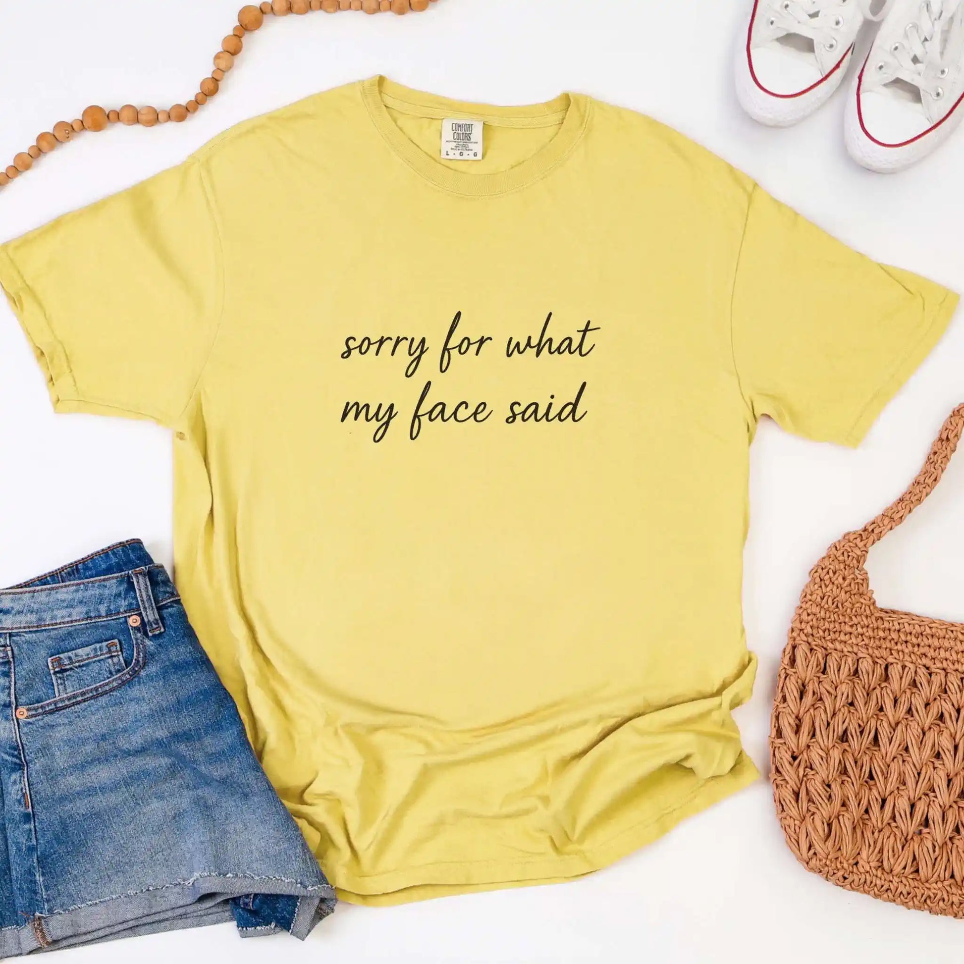 This playful tee is for anyone whose expressions tell the truth before their mouth does. With the witty phrase “Sorry for What My Face Said,” it’s the ultimate shirt for those who can’t hide their mood — or don’t even try to.