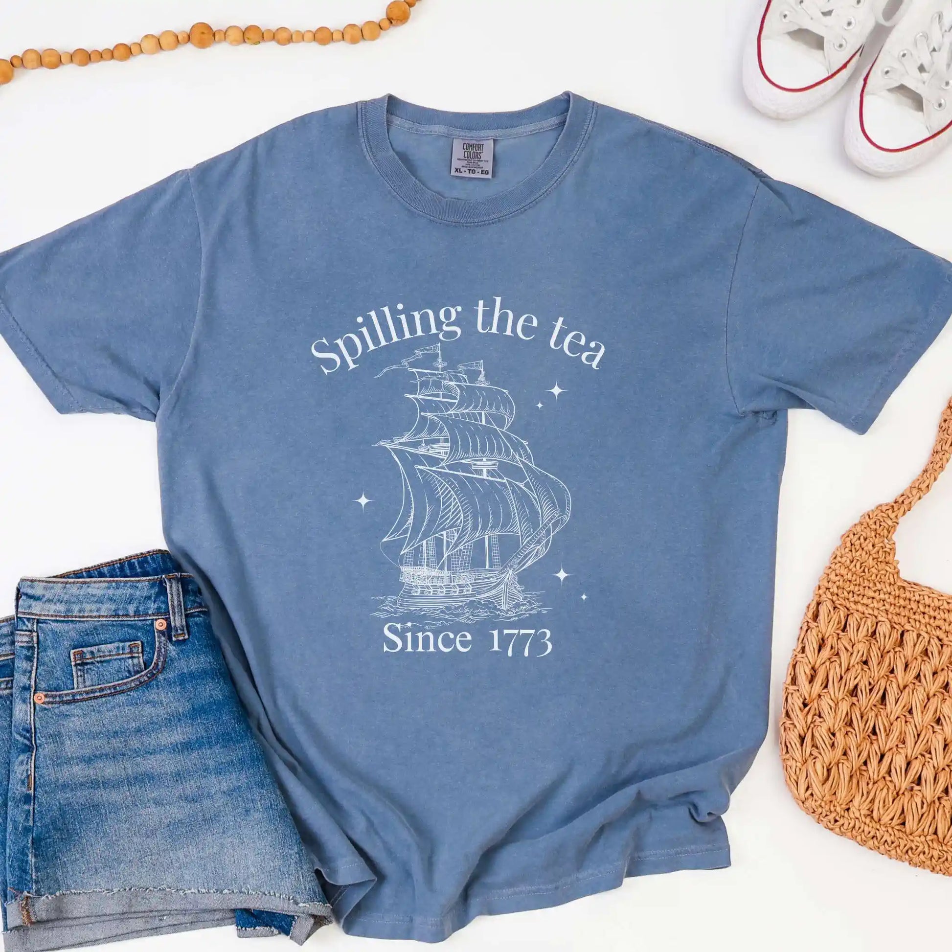 With wit and rebellion in equal measure, our “Spilling the Tea Since 1773” tee serves history with a side of sass.