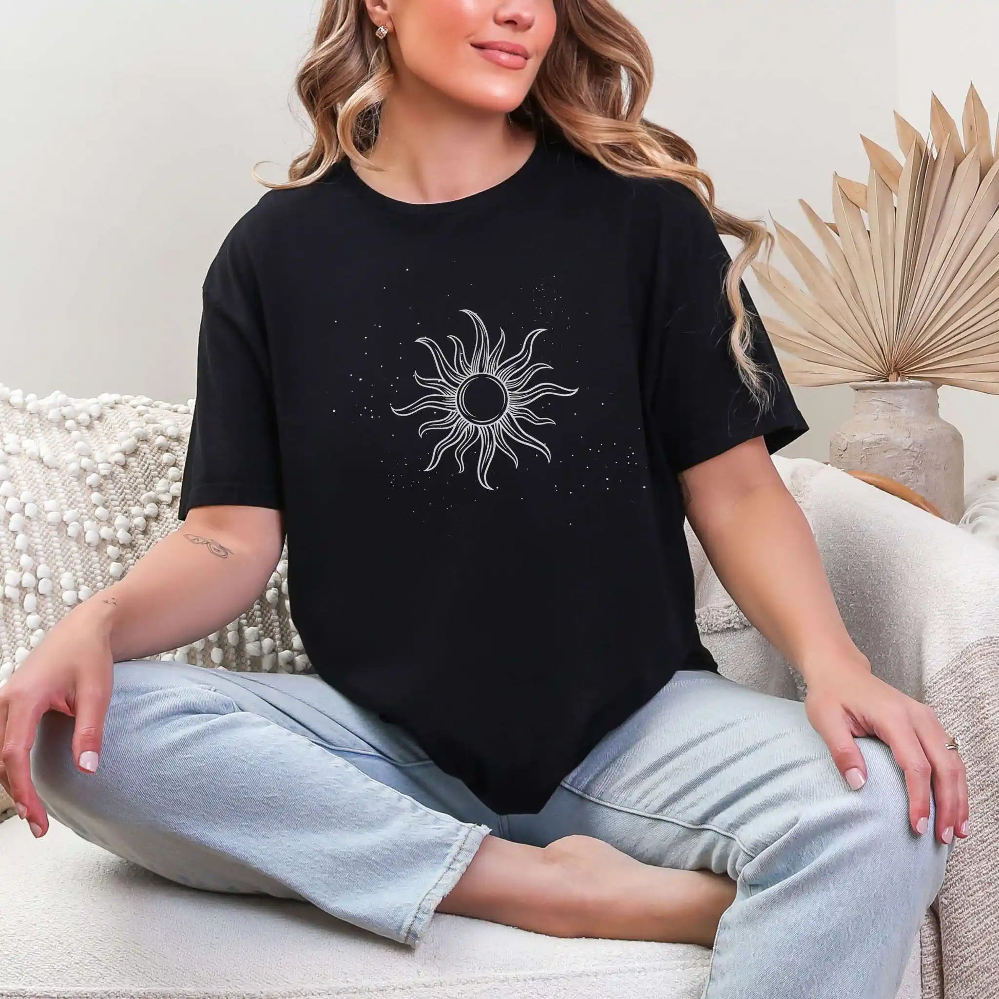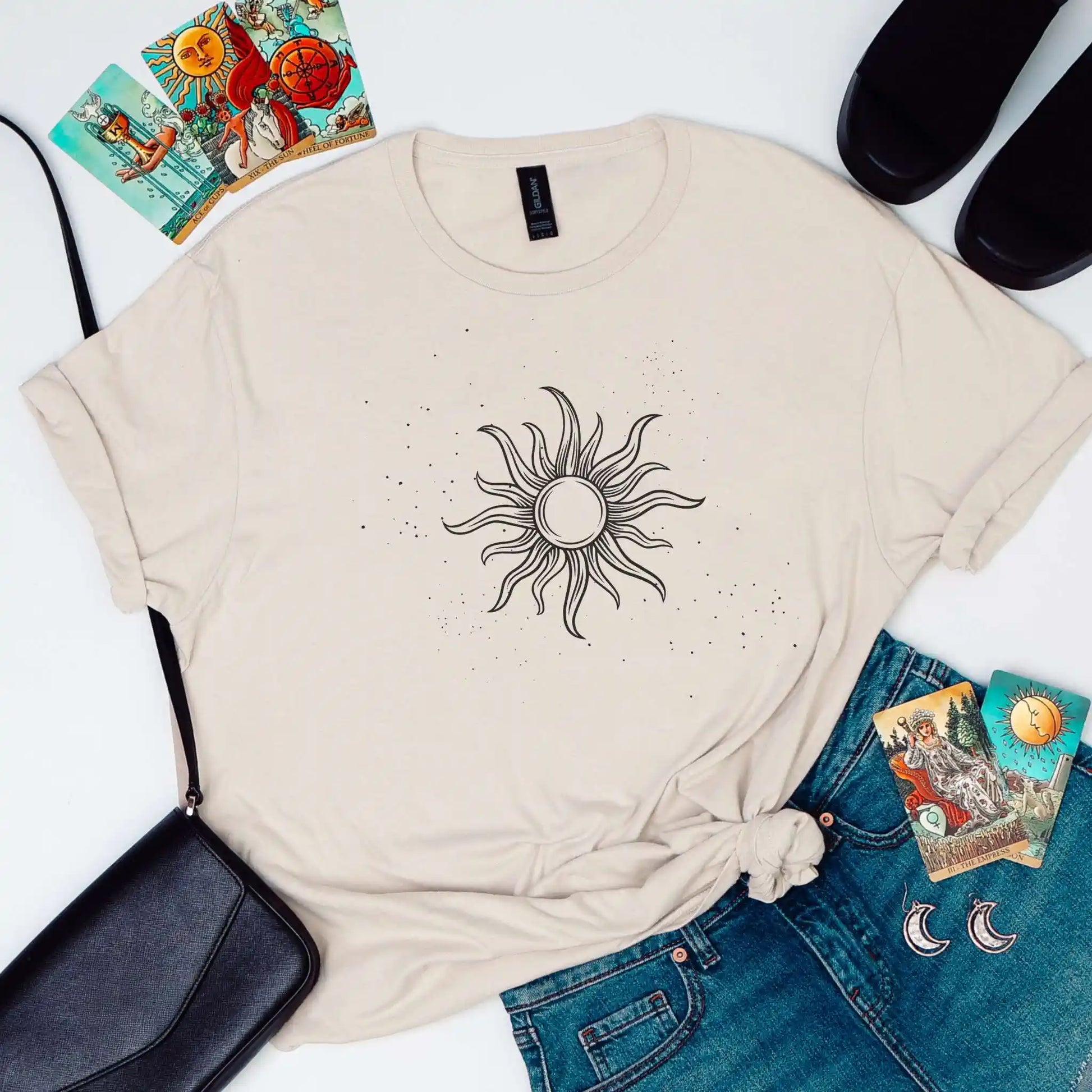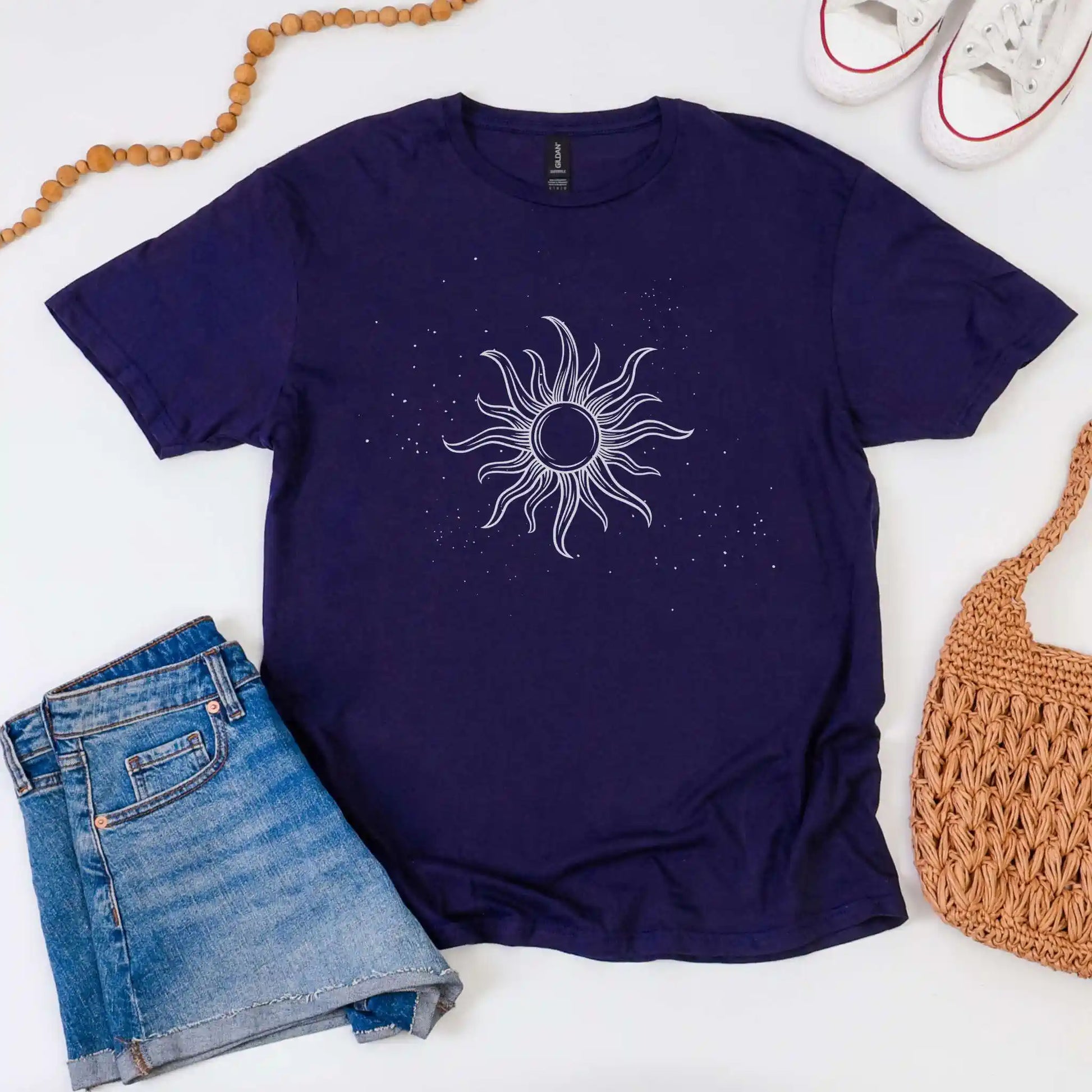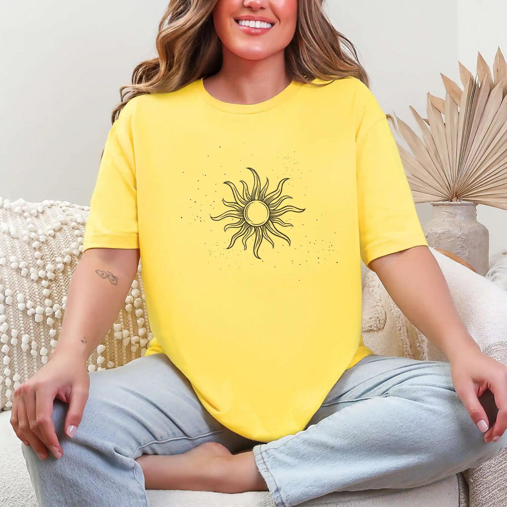 Awaken your style with this front design that radiates warmth, light, and celestial charm. Inspired by the sun’s enduring glow, this t-shirt is your daily reminder to shine bright and rise with purpose.