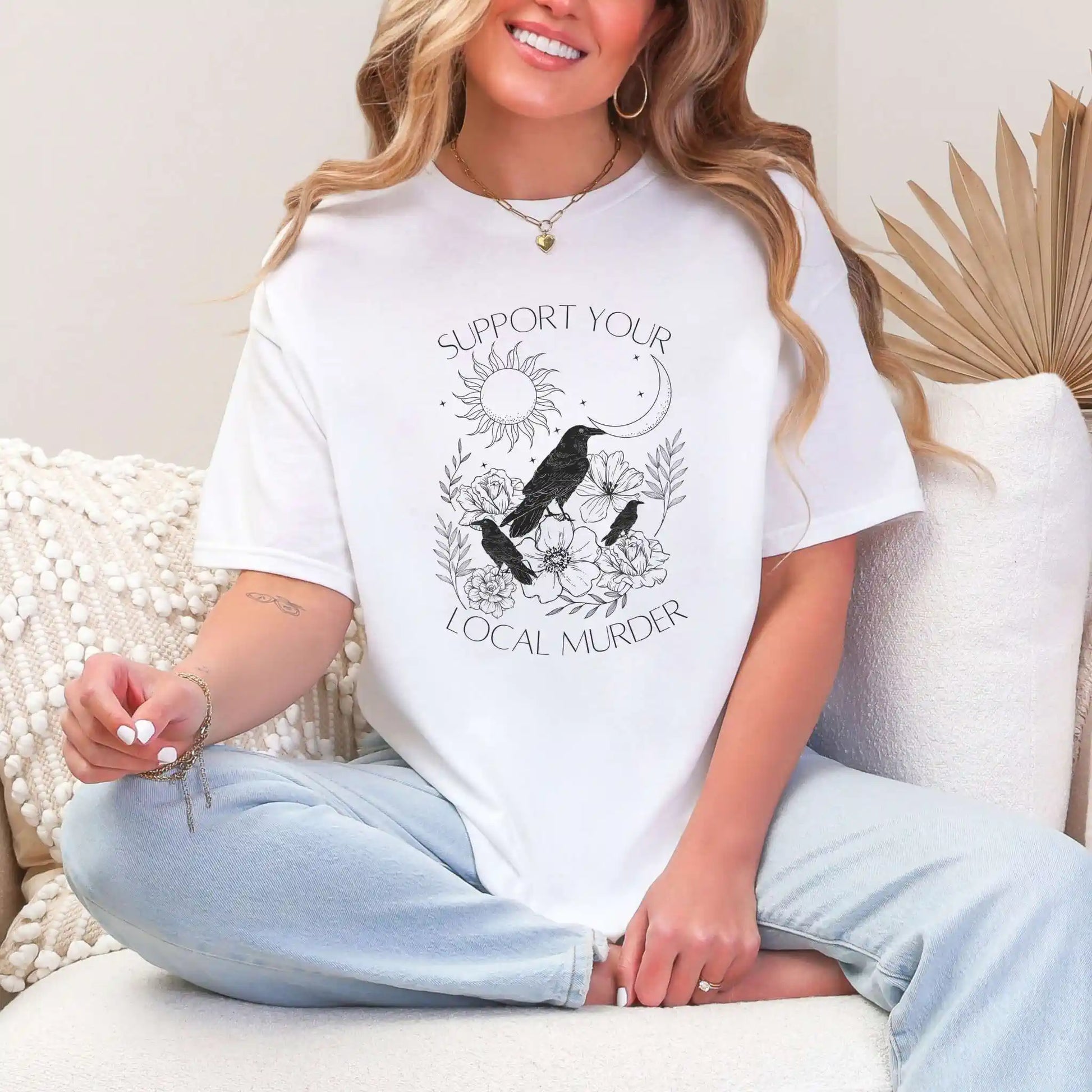 Support your feathered friends — our “Support Your Local Murder” tee blends crow-filled charm with sharp-witted style.