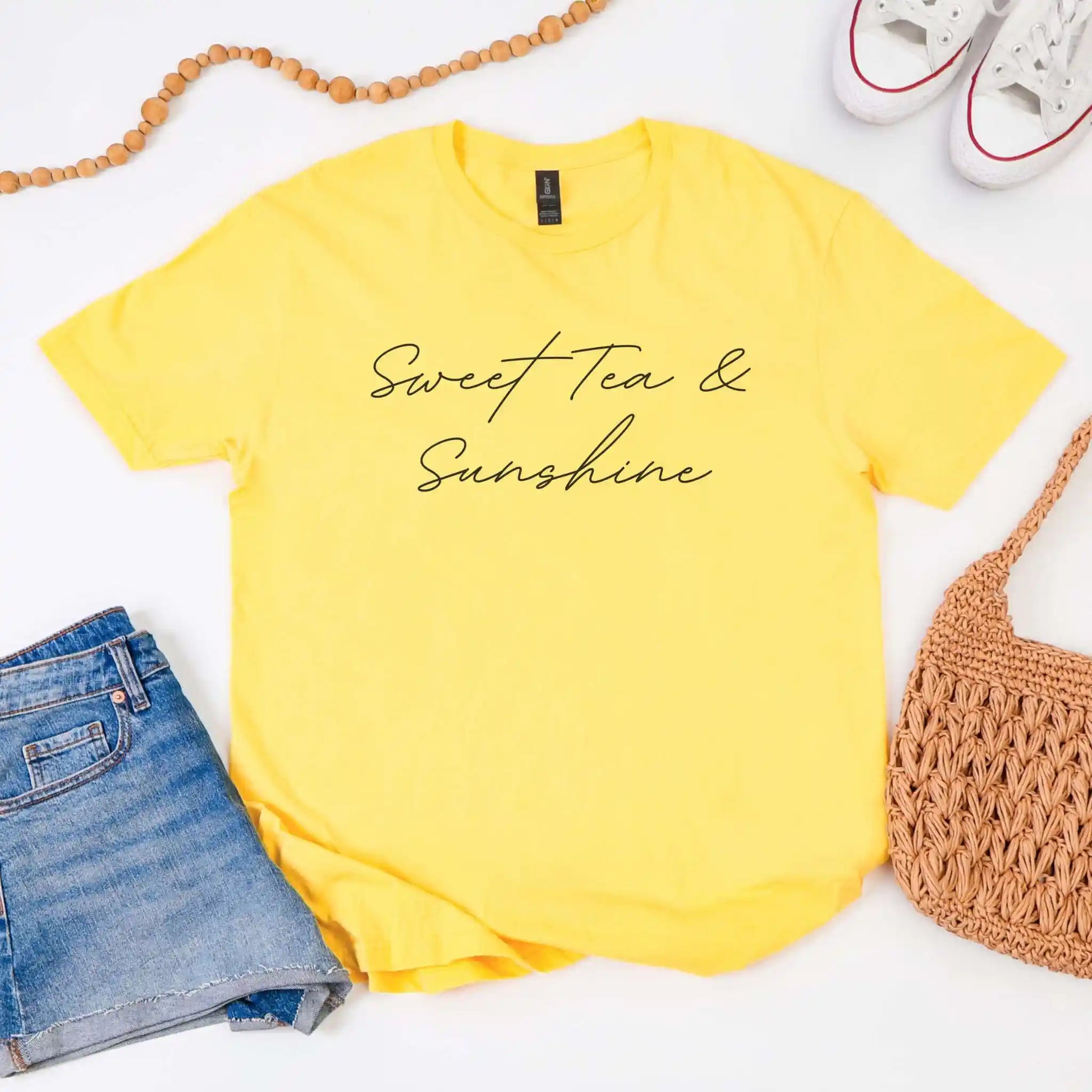 For the slow sippers, porch sitters, and sun chasers — this tee is your summer love language. It brings the comforting charm of sweet tea and the golden glow of sunshine together in one effortless statement.