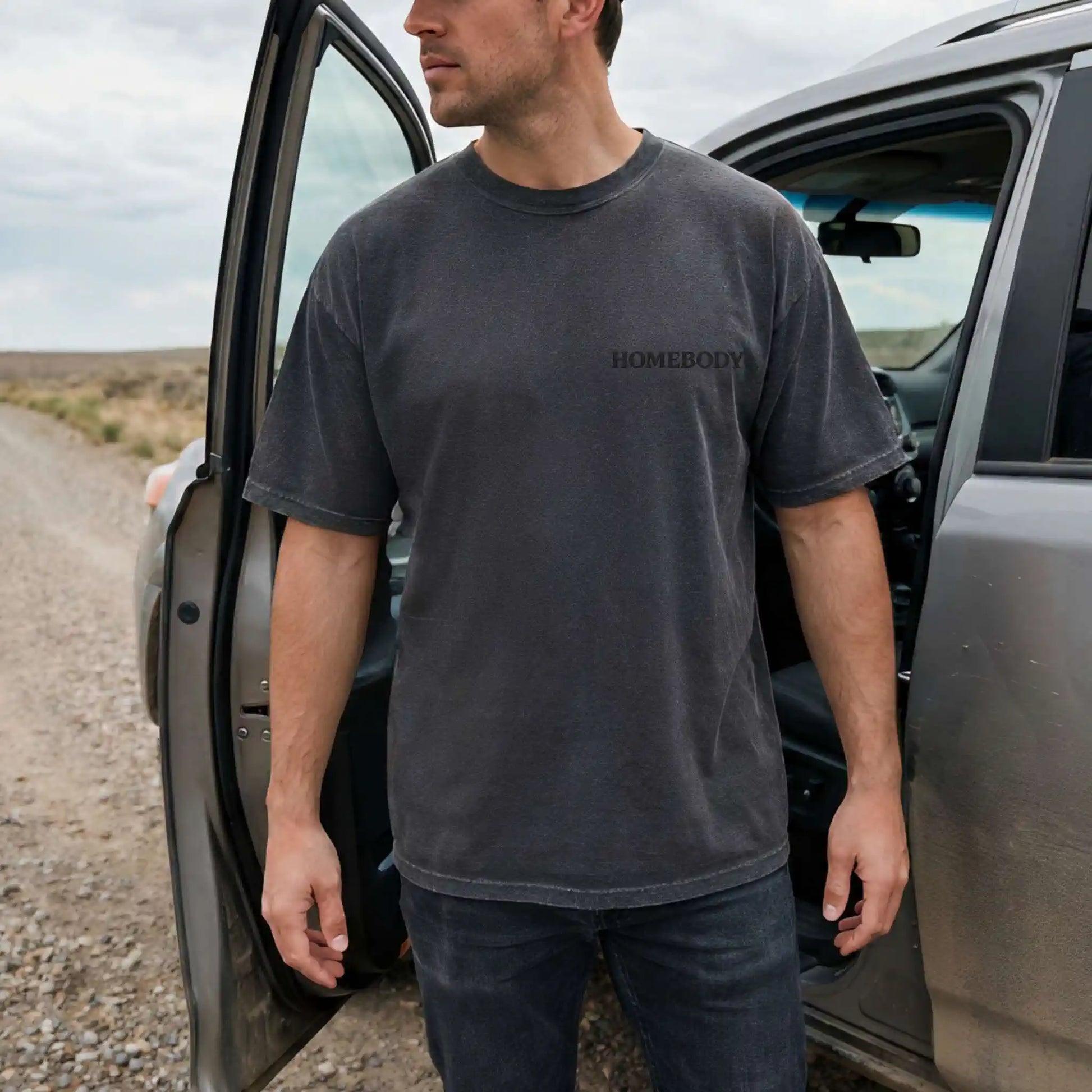 The front pocket design keeps it simple with “Homebody,” while the back design features bold stacked text including “Certified Homebody” and “Plans? No Thanks.” This front-and-back t-shirt is ideal for cozy weekends and peaceful evenings.