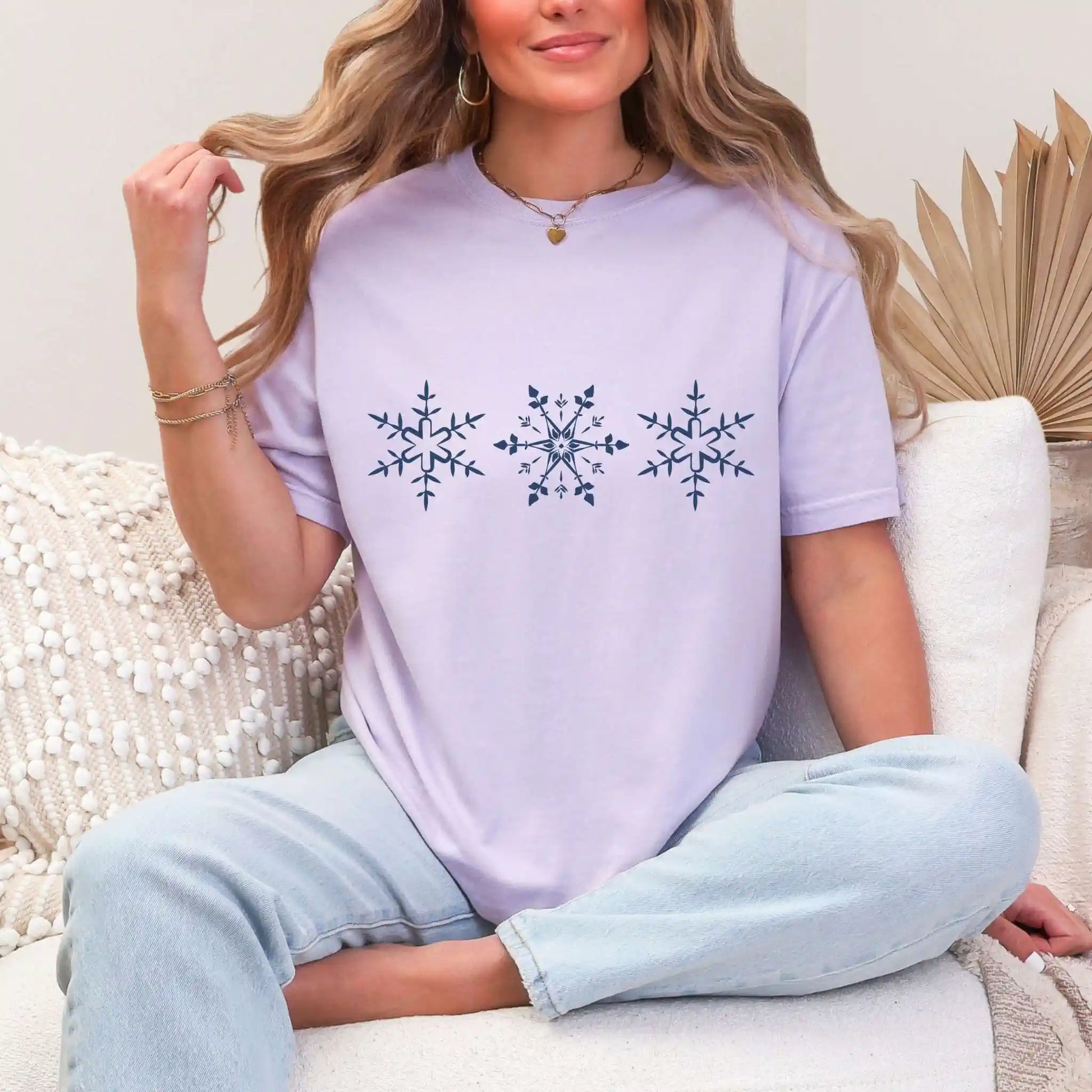 Our “Winter’s First Snowflakes” tee captures the delicate beauty of winter with a minimalist snowflake design. Whether you’re celebrating the season or simply admiring the quiet elegance of winter, this shirt adds a touch of frosty charm to any outfit.